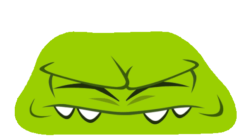 Om Nom, the green monster, winks with one eye while the other features a red target reticle, indicating a focused aiming look.