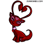 The iconic Neopets character Aisha, a red cat-like creature with large ears and a heart on its tail.