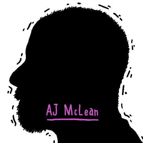 A purple text sticker featuring the name AJ McLean, known from the Backstreet Boys, with an underline.