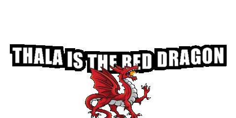 A fiery red dragon with the text 'THALA IS THE RED DRAGON', referencing actors Ak and Thalapathy Vijay.