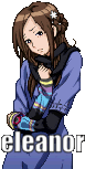 Pixel art sticker featuring Akane Kurashiki from 999, winking with the name Eleanor written on it.