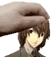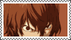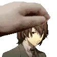 Akechi Goro from Persona 5 with an intense, wide-eyed expression, framed like a postage stamp. His manic smile is unsettling.