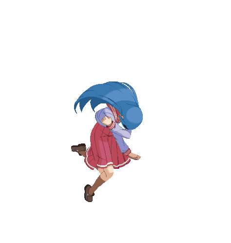 Akiha from Melty Blood executes a dynamic spinning kick, showcasing her powerful combat moves.