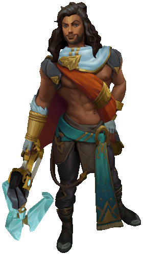 a man with long hair and a beard is holding a sword and shield
