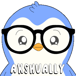 A cute blue penguin wearing black glasses, with the word 'AKSHUALLY' displayed, perfect for correcting someone.