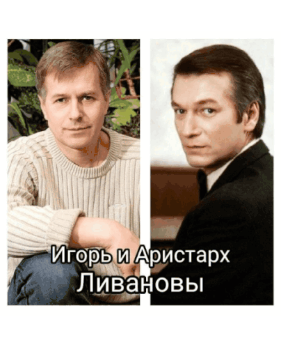 Actors Igor Livanov and Aristarkh Livanov, known for their roles in Russian cinema and television, are featured together.