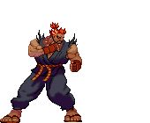 Akuma Gouki from Street Fighter delivers a powerful knockback kick in this pixel art animation.