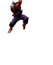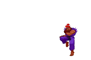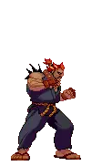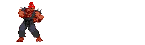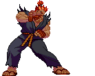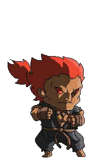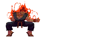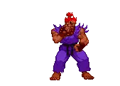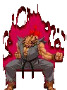Pixel art sticker of Akuma (Gouki) from Street Fighter, preparing a powerful Hadouken attack.