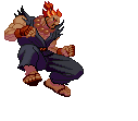 Akuma, the powerful Street Fighter character, performs a dynamic midair kick in this animated sticker.