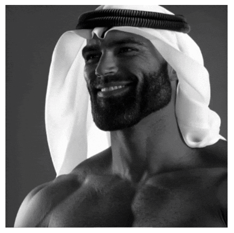 a man with a beard is wearing a white head scarf and smiling