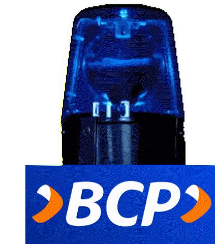 A blue emergency light flashes above the distinctive blue and orange BCP logo, signaling an alert or security.