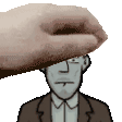 A hand holds Albert Vanderboom's detached head, a classic scene from the mysterious Rusty Lake universe.