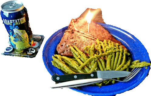 a can of adaptation ale sits on a coaster next to a plate of food