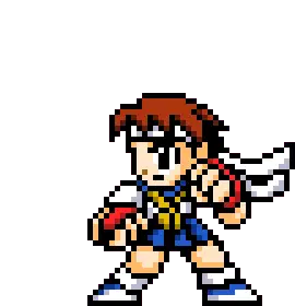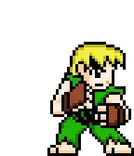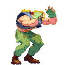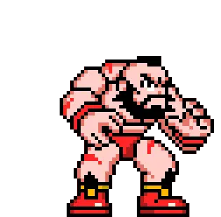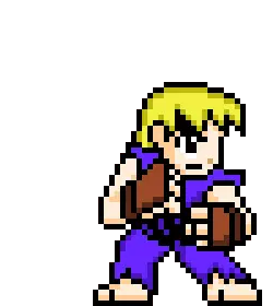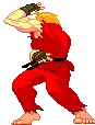 Alex from Street Fighter transforms, ripping his shirt to reveal his powerful, muscular physique and gauntlets.