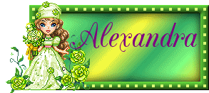 An animated sticker featuring the name 'Alexandra' in elegant green cursive, adorned with delicate pink flowers.