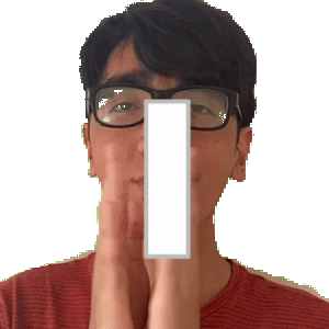 a man wearing glasses is covering his face with his hands while holding a white rectangle