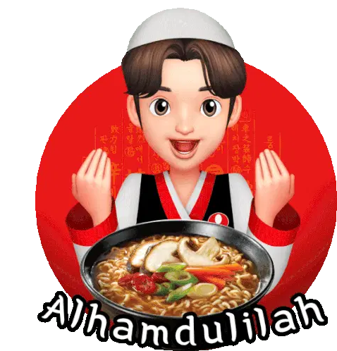 Animated sticker celebrating the disbursement of THR (holiday bonus) today, with 'Alhamdulillah' text and sparkles.