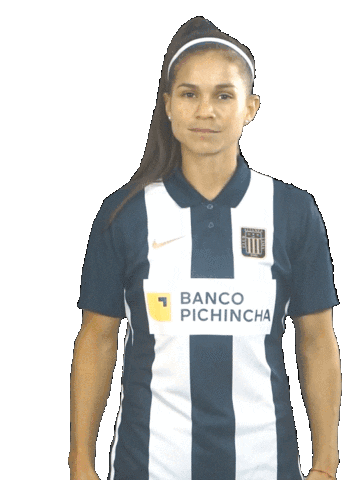 Adriana Lucar, a footballer for Alianza Lima, shows her team's jersey with pride and excitement.