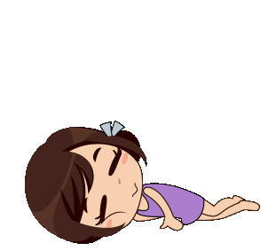 Alice, a cute cartoon girl, is depicted falling or lying down with a tired and sleepy expression, perfect for conveying exhaustion.