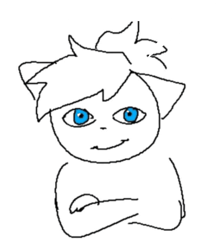 a drawing of a cat with blue eyes and a flower in its hair
