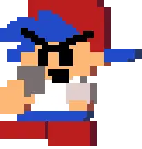 Alisonbairren in pixel art form, wearing cool sunglasses and a tie, from the FNaF universe.