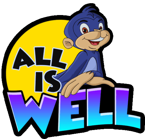 Jaggu, the cheerful monkey from Chhota Bheem, smiles brightly alongside the reassuring phrase "ALL IS WELL."