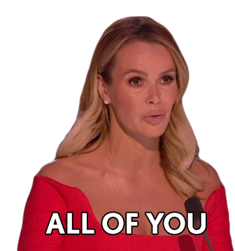 Amanda Holden from Britain's Got Talent says 'ALL OF YOU' with a direct and engaging expression, perfect for addressing a group.