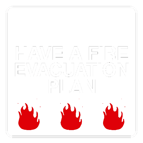 Allbetter Schwartzj sticker featuring a fire safety sign: 'Have a Fire Evacuation Plan' with burning flames.