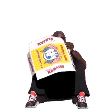 Rich Benoit sits holding a cardboard sign that reads 'ALMOST BANKRUPT', expressing a state of financial distress.