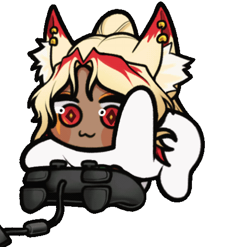 Alpha Controller character, a cartoon girl with striking red eyes, holds a video game controller.