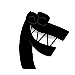 The black cartoon letter F from Alphabet Lore is shown happily dancing with a wide smile and expressive movements.