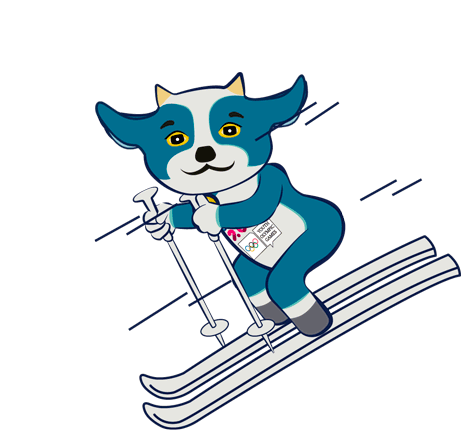 Yodli, the Lausanne 2020 Winter Youth Olympic Games mascot, enthusiastically skis down a slope.