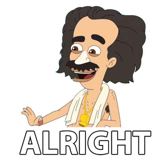 Coach Steve from Big Mouth, shirtless with a towel around his neck, gives a positive 'Alright' expression.