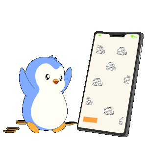 A cute cartoon penguin floats next to a smartphone displaying a crypto game with gold coins, symbolizing alt season and digital wealth.