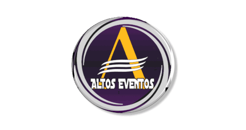 A dynamic animated logo for Altos Eventos Radio, featuring a spinning circular design.