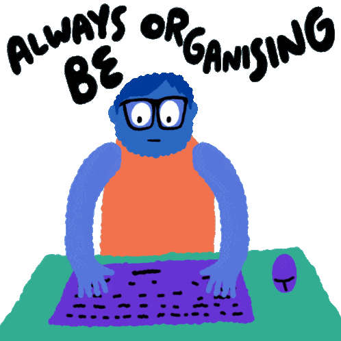 Always Be Organizing: A sticker for activism, political campaigns, and voter registration, featuring themes of organizing and volunteering.