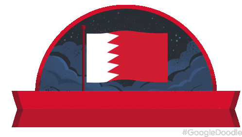 Celebrate Bahrain National Day with this animated Google Doodle featuring the national flag and a festive greeting.