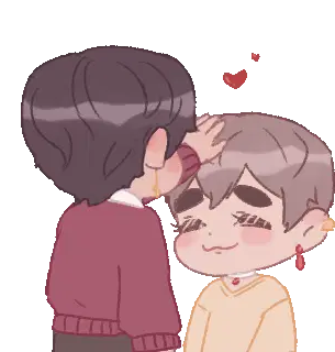 Alyssumblossoms' character Luka or Theo blowing a sweet kiss with hearts floating nearby.