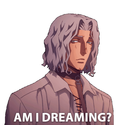 Hector from Castlevania, voiced by Theo James, asks "Am I dreaming?" with a confused expression.