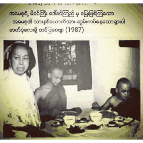 Historical photos featuring Amaysu Sumaymay (Aung San Suu Kyi)'s family, including her mother Daw Khin Kyi and sons.