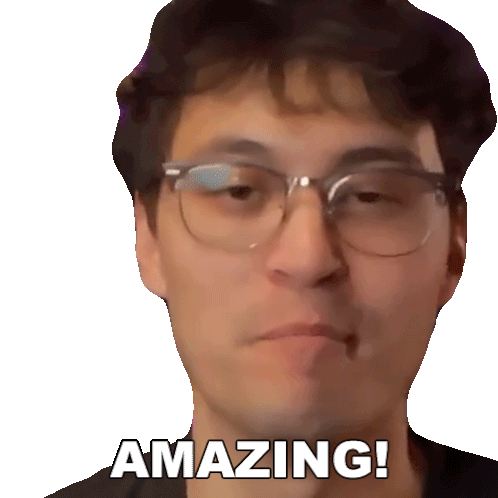 Agufish, a man with glasses, smiles and says 'Amazing!' in this animated sticker.
