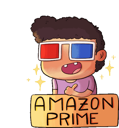 Animated sticker featuring the iconic Amazon Prime logo with its distinctive smile, accompanied by the Hindi text 'ऐमज़ॉनप्राइम'.
