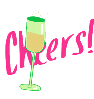 Amber Roberts' animated sticker features a vibrant champagne glass with bubbles, accompanied by a cheerful 'Cheers!' message.