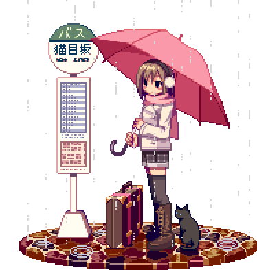 Ambers Mood, alone and sad, waiting for the bus in the rain, conveying a sense of melancholy and longing.
