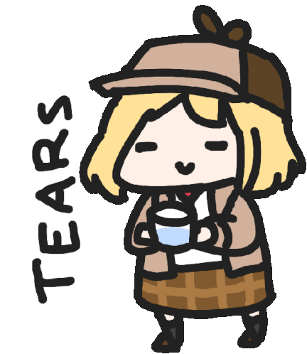 Amelia Watson from Hololive, in a walfie-style animation, waves cheerfully with a big smile.