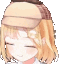 Amelia Watson, a blonde anime girl in a hat and white shirt, smiles gently while vibing with closed eyes.