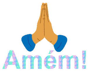 Animated sticker of hands folded in prayer with the word 'Amém', conveying faith and spiritual reflection.