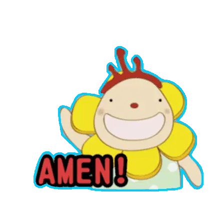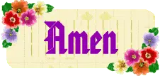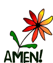 A sticker featuring the word Amen in bold, stylized letters, set against a background with a red rose.