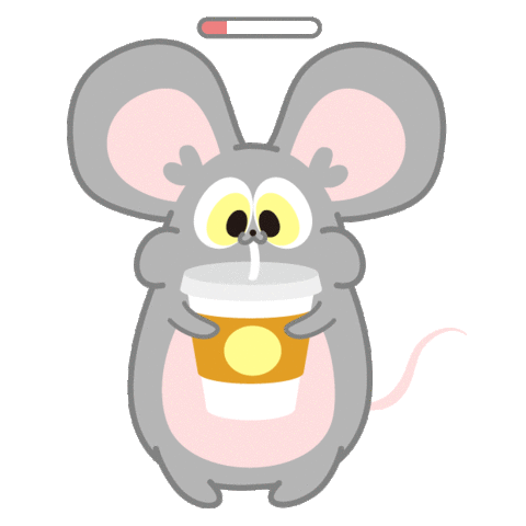 A cute cartoon mouse sips from a cup with a straw, while a loading bar progresses above its head.