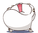 Ami Cat, a chubby cartoon cat, yells with its mouth wide open, appearing to dance or act silly with raised paws.